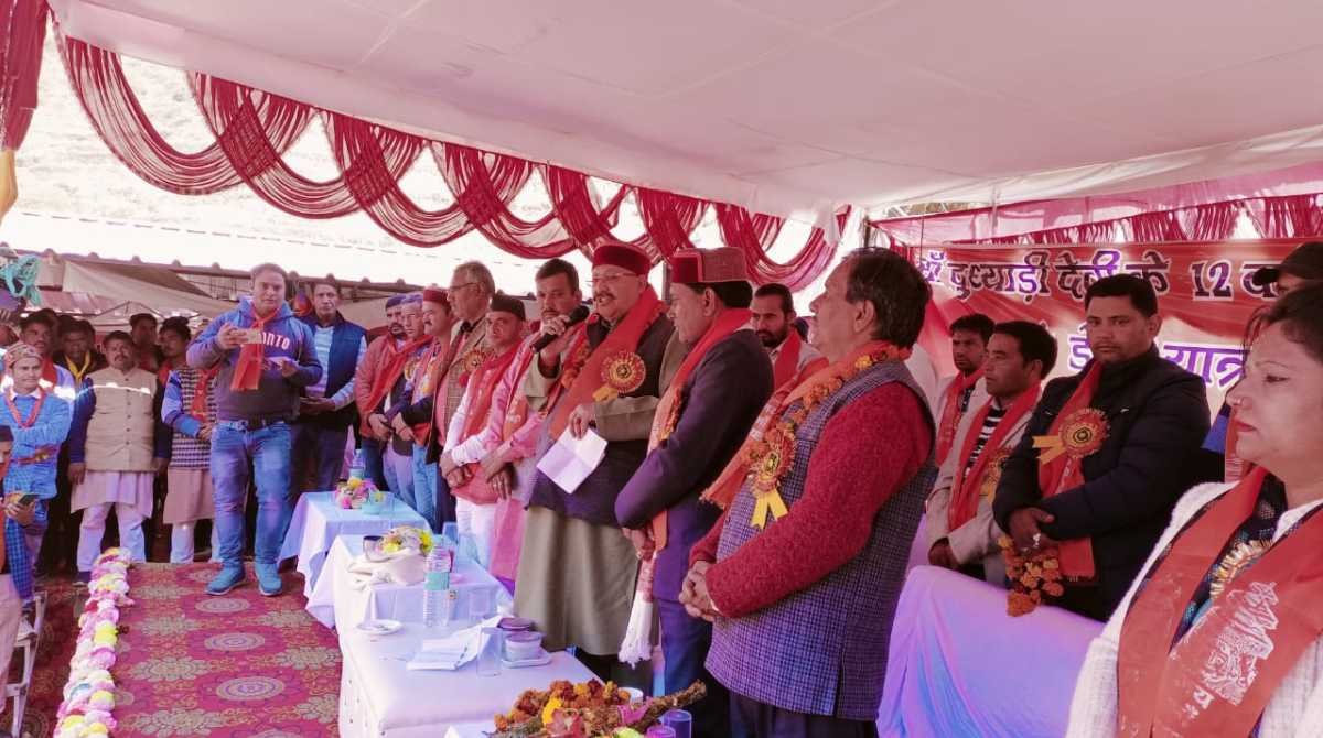 Tehri News: मा. मंत्री लोक निर्माण विभाग, पर्यटन, सिंचाई, लघु सिंचाई, संस्कृति, ग्रामीण निर्माण, पंचायतीराज, जलागम प्रबन्धन, बाढ़ नियंत्रण एवं भारत-नेपाल उत्तराखण्ड नदी परियोजनाएं, उत्तराखण्ड शासन सतपाल महाराज द्वारा आज विधान सभा क्षेत्र घनसाली के अन्तर्गत पट्टी गोनगढ़ विकासखण्ड भिलंगना टिहरी गढ़वाल पहुंचकर माँ दुध्याड़ी देवी मेले में प्रतिभाग किया गया। मंत्री द्वारा माँ दुध्याड़ी देवी की डोली से आर्शीवाद भी लिया गया।