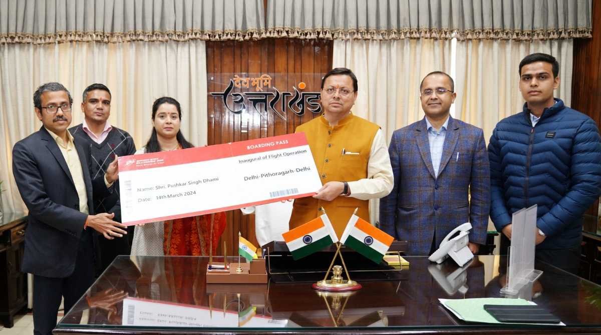 मुख्यमंत्री पुष्कर सिंह धामी ने आज कैम्प कार्यालय, देहरादून में दिल्ली से पिथौरागढ़ हेतु प्रारम्भ हो रही एलायंस एयर की हवाई सेवा का औपचारिक शुभारम्भ किया। मुख्यमंत्री ने कहा कि लंबे समय से चली आ रही मांग को पूरा करते हुए आज औपचारिक रूप से विमान सेवा का शुभारंभ कर दिया गया है।